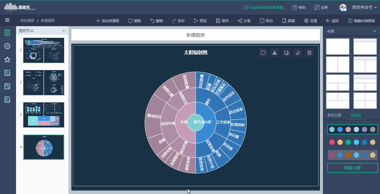 个性化定制:支持图表、文字、图片混排,提供专业数据分析模板,支持图表、文字、图片混排和任意拖拽布局,支持自定义主题、个性化定制数据分析报告。