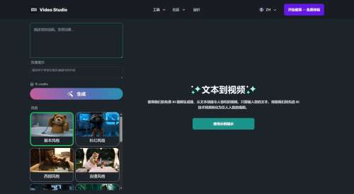 从文字生成高质量的 AI Video Studio 视频,无需视频编辑技能或 AI 知识,我们的免费 Video Studio 让用户可以从简单的文字提示生成视频。只需释放您的想象力,将文字转化为吸引人的视频。