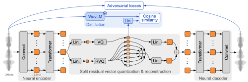 Mimi 是 Moshi 中用于语音处理的神经音频编解码器。它的任务是将连续的语音信号离散化为音频标记。这些离散的音频标记类似于文本标记,可以表示语音中的详细信息。 Mimi采用残差矢量量化(RVQ)技术,以较低的比特率保留高质量的音频,支持实时语音生成和处理。